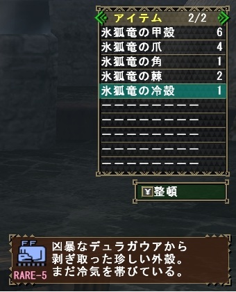氷狐竜の冷殻×1、狩猟笛魂・序×15、狩猟笛魂・中×15