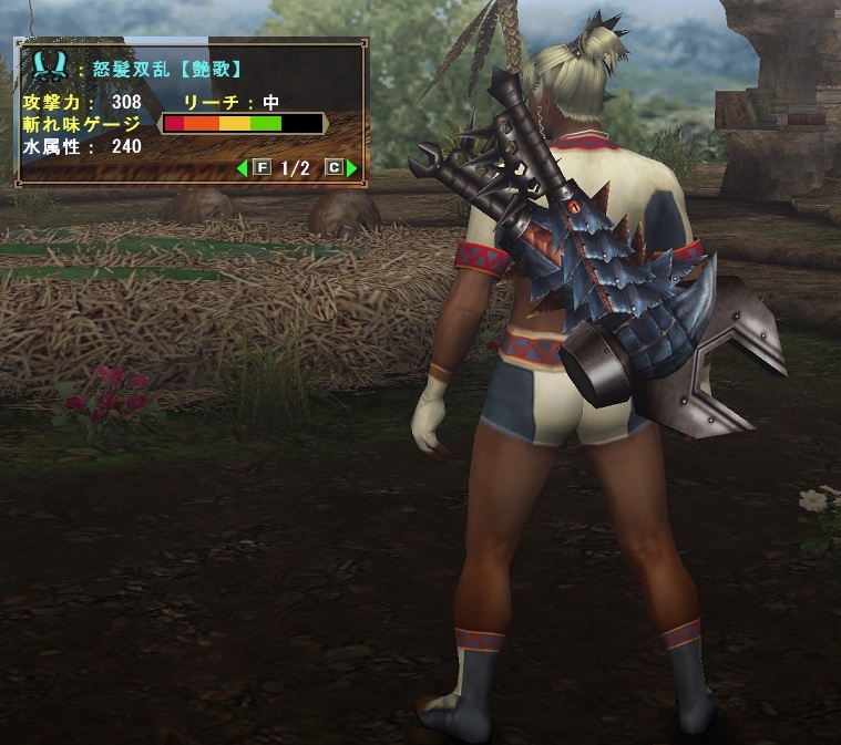 武器倍率220 攻撃値308 水属性値240 会心20% スロ0 匠でちょっぴり青ゲージ