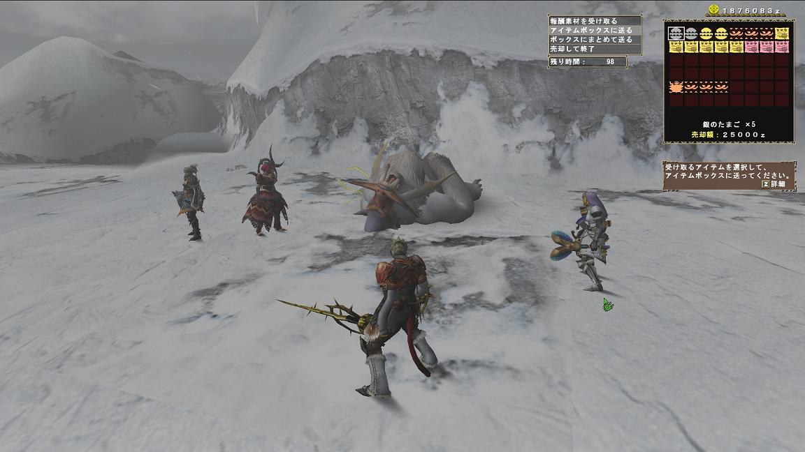 雪山でラージャン討伐、頭破壊、ブランゴ5匹がマストオーダーです。