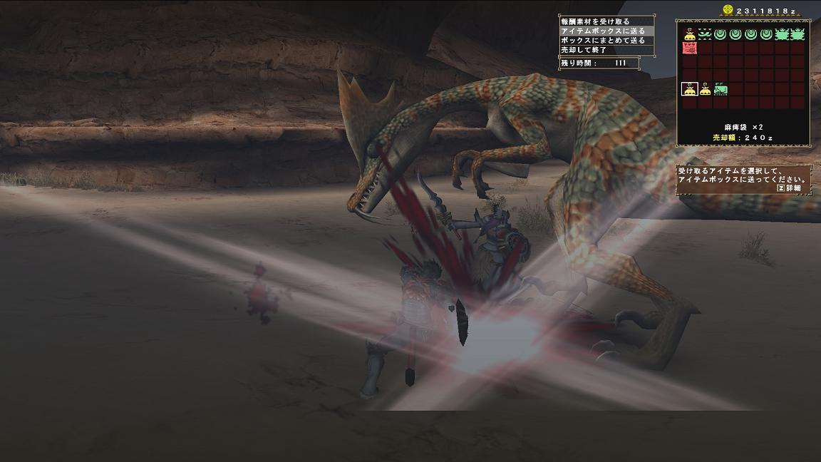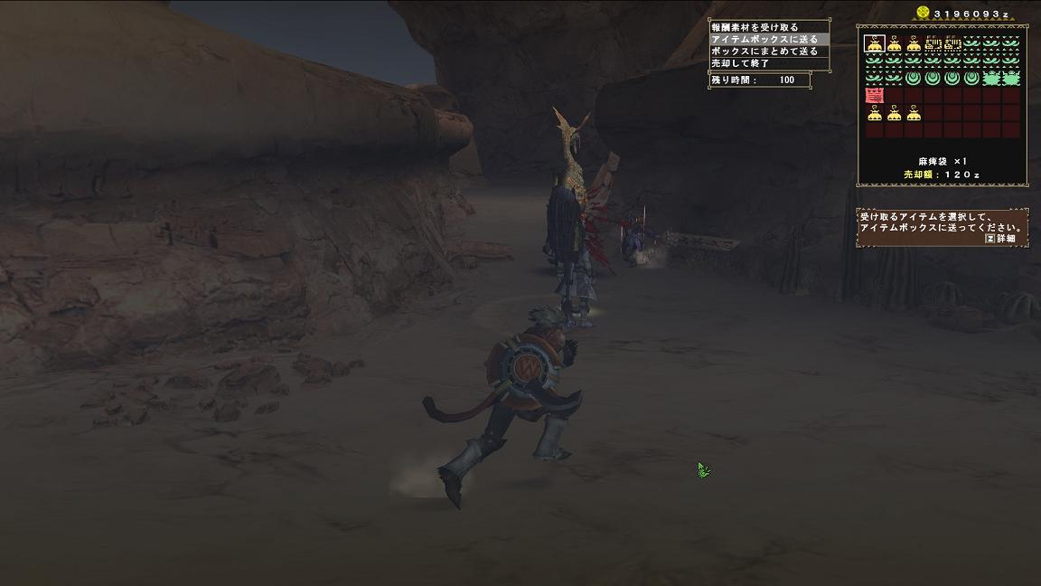 下位よりは上位、剥ぎ取りよりは捕獲報酬の方が麻痺袋が出やすいみたいです。