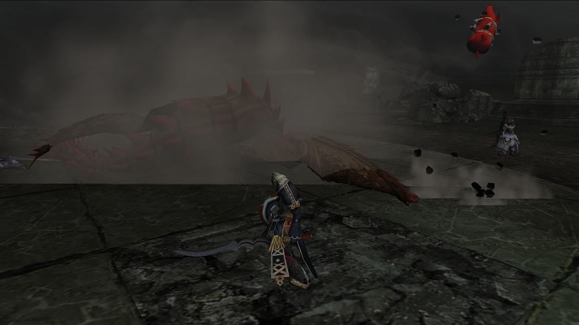 今日の場合は槍は基本的に頭攻撃、自分はリーチ長で翼を攻撃します。火力よりは麻痺入れですね。