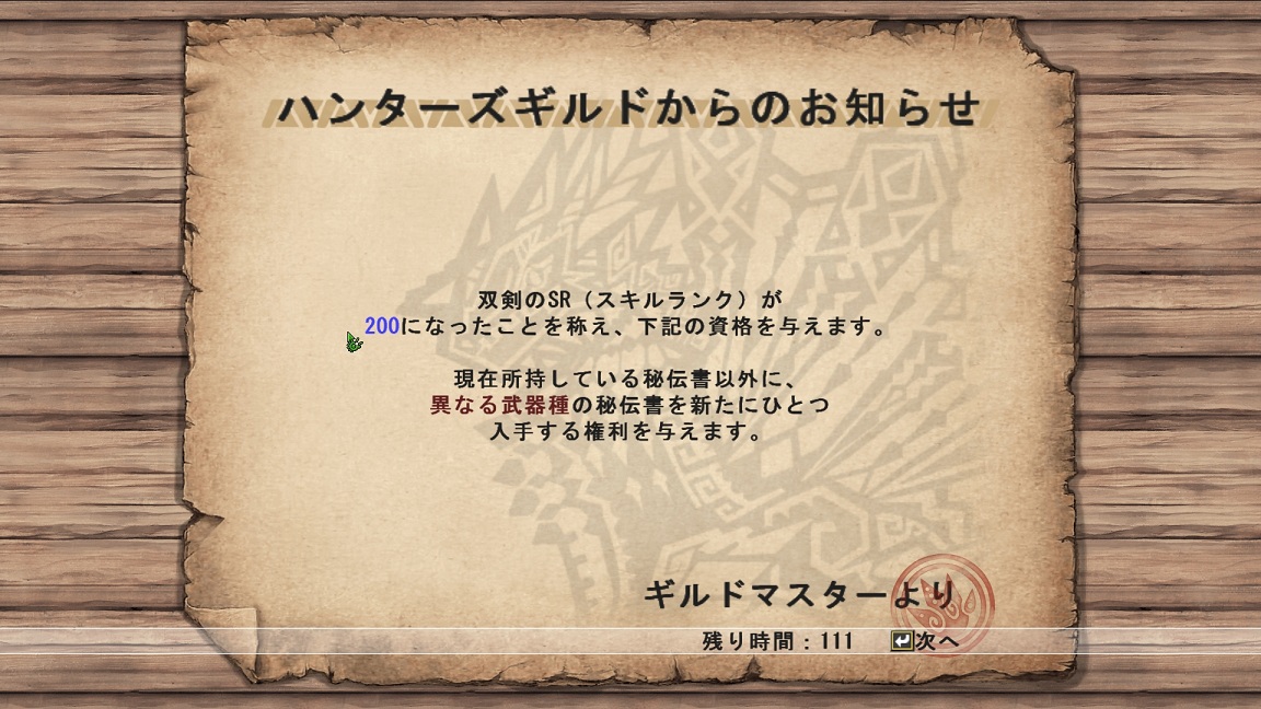双剣ばかり使ってるせいでハンターキャリアも片手・双剣が極端に伸びていきますね・・・(´・ω・`)