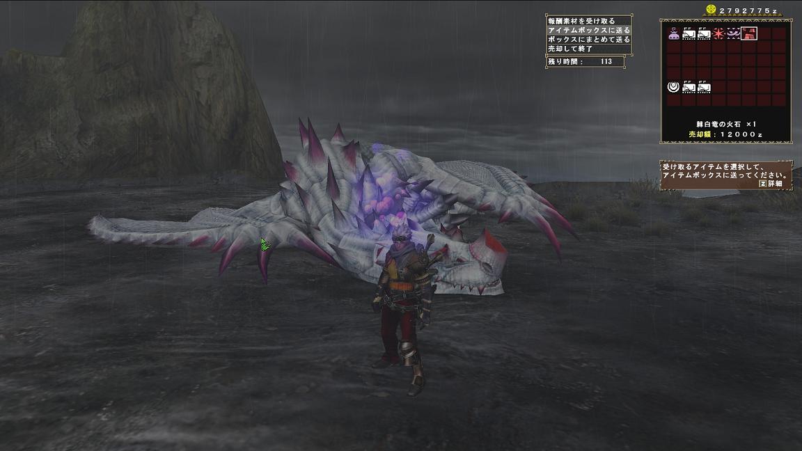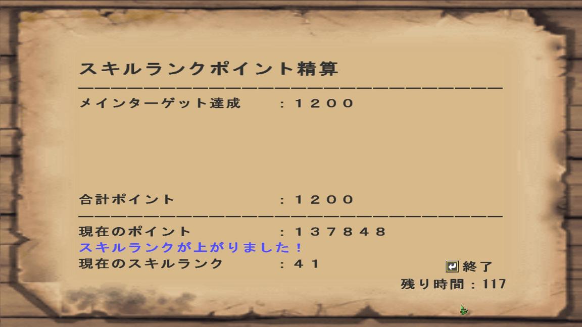 レイアとドスランポスという内容でしたが、かかる時間の割に取得SRPは1180と森丘レウス以下でした(ノД`)