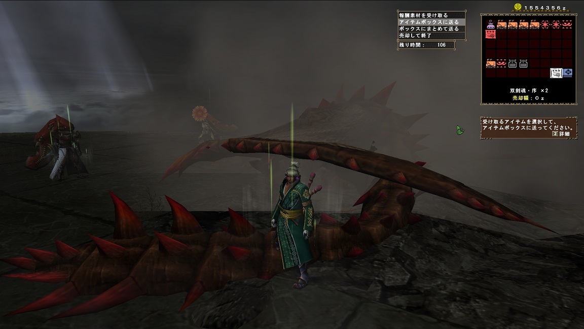 一斉に信号弾撃って頭を破壊、ここでたまに頭破壊後にモドリ玉使って尻尾にワープして尻尾破壊に向かうPTと組む事がありますが、笛の場合はどうしたらいいんでしょう・・・(´・ω・`)