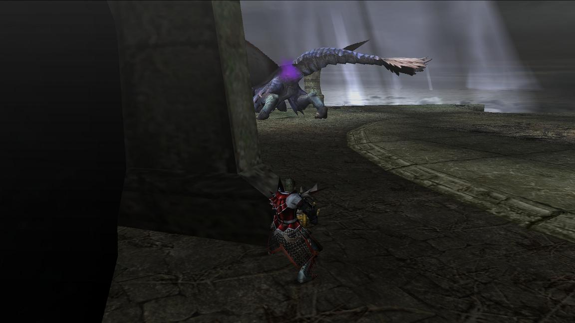 そしたら柱付近に誘導してその場で乙るのですが、前述の睡眠弾を撃ち込んだ間隔によってはここで乙る直前にもう1発LV1をぶち込みます。